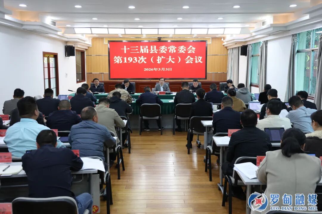 3月3日,县委常委会召开(扩大)会议,深入学习贯彻习近平总书记重要文章《当前经济工作的重点任务》和近期重要讲话精神,贯彻落实中央、省、州有关文件和州两会精神,研究部署全县一季度经济运行、乡村振兴、集中整治、森林防灭火、全国两会期间安全稳定等工作。